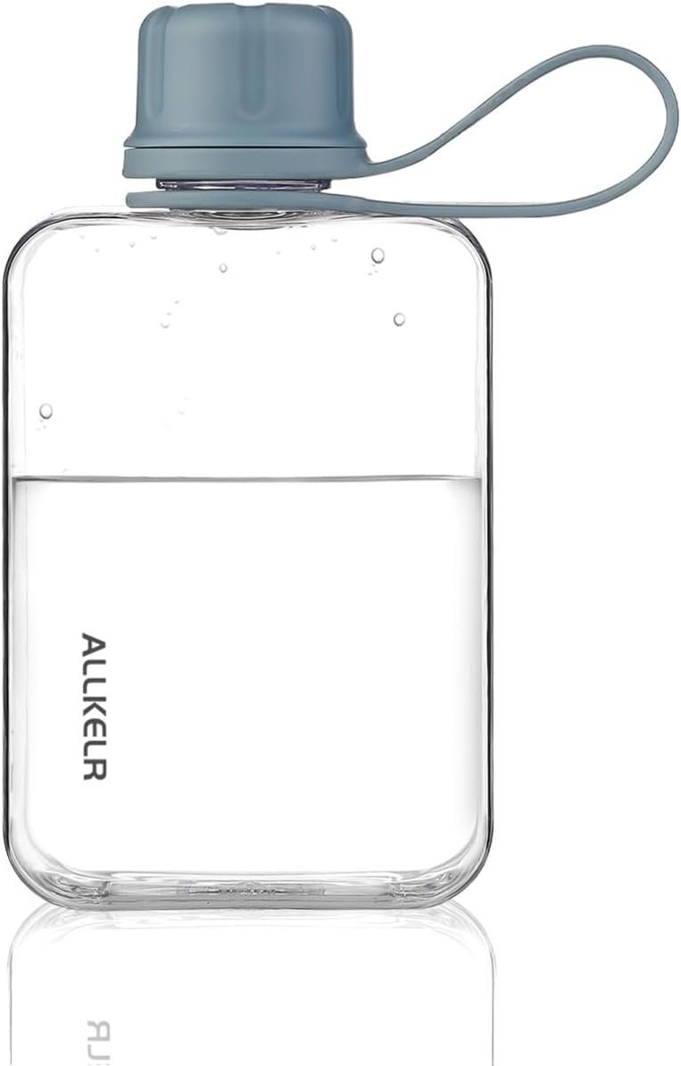 Portable Flat Water Bottle,BPA Free Reusable Tritan Plastic Travel Water Bottle Cup,Lightweight Leakproof Slim Water Bottles Fits Purse,Backpacking,Hiking (Blue, 8 oz)